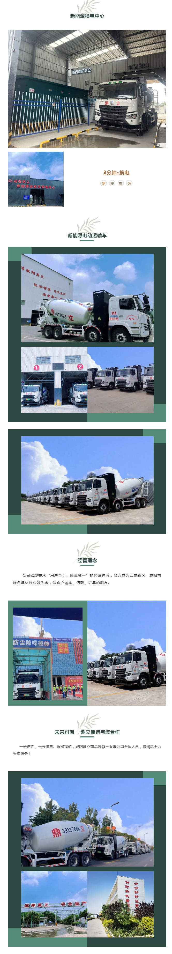 為響應(yīng)國(guó)家“十四五”發(fā)展規(guī)劃,順應(yīng)“能源革命”潮流,圍繞“碳達(dá)峰、碳中和”目標(biāo)和“建立健全綠色低碳循環(huán)發(fā)展經(jīng)濟(jì)體系”國(guó)家戰(zhàn)略,建設(shè)綠色環(huán)保型企業(yè),我公司于2023年3月開(kāi)始,建設(shè)了新能源運(yùn)輸車(chē)換電中心,啟用了新能源電動(dòng)攪拌運(yùn)輸車(chē)40余輛,加上之前使用的2臺(tái)電動(dòng)裝載機(jī),使整個(gè)生產(chǎn)區(qū)域達(dá)到綠色、環(huán)保、低碳、零排放標(biāo)準(zhǔn)。